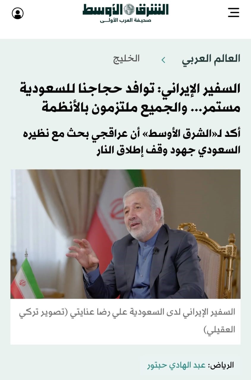 مصاحبه سفیر جمهوری اسلامی ایران در عربستان سعودی با روزنامه الشرق الاوسط