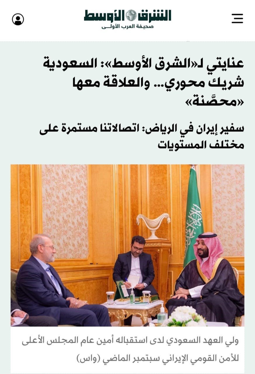 مصاحبه سفیر کشورمان در عربستان سعودی با روزنامه الشرق الأوسط